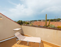 "Sol", 4-Zimmer-Doppelhaushälfte 66 m2. Komfortabel und modern eingerichtet: Wohn-/Esszimmer mit Esstisch und Digital-TV. Ausgang zur Terrasse. Kochnische (4 Kochplatten, Backofen, Toaster, Mikrowelle, elektrische Kaffeemaschine). Keine Heizmöglichkeit. Obergeschoss: 1 Zimmer mit 1 franz. Bett (135 cm, Länge 190 cm). 1 Zimmer mit 1 Bett (90 cm, Länge 190 cm). Bad/Bidet/WC. 2. Obergeschoss: 1 Zimmer mit 1 franz. Bett (135 cm, Länge 190 cm), sep. WC. Ausgang zum Balkon. Terrasse. Terrassenmöbel, Gartengrill. Fernsicht auf das Meer. Zur Verfügung: Waschmaschine, Bügeleisen, Kinderhochstuhl, Babybett bis 2 Jahre, Haartrockner. Internet (Wireless LAN, gratis). HUTT063885 Eine Badewanne ist verfügbar. Geeignet für ein Barbecue. Ein Babybett ist verfügbar. Das Haus ist auch mit einem Internetanschluss ausgestattet.- Ausstattung