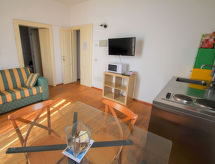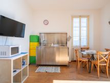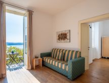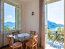 "Belvedere", 2-Zimmer-Wohnung 35 m2 im 1. Stock. Einfach und zweckmässig eingerichtet: Wohn-/Esszimmer mit 1 Doppeldiwanbett (140 cm), TV. 1 kleines Doppelzimmer. Kochnische (2 Kochplatten, Mikrowelle). Dusche/Bidet/WC. G-Heizung. Heizung nur verfügbar von 15.10. bis 15.04. Kleiner Balkon. Schöne Panoramasicht auf den See und die Berge. Zur Verfügung: Haartrockner. Internet (Wireless LAN, gratis). Bitte beachten: Kühlschrank ohne Gefrierfach.- Ausstattung