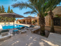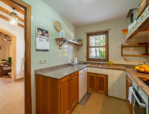 "Son Gram (CMP150)", 5-Zimmer-Haus 130 m2 auf 2 Stockwerken. Geschmackvoll eingerichtet: Wohnzimmer mit Sat-TV, Radio, CD, DVD, E-Heizofen und Ventilator. 1 Zimmer mit 1 franz. Bett (1 x 150 cm), E-Heizung und Klimaanlage. Esszimmer mit offenem Kamin, Esstisch und E-Heizofen. Küche (Backofen, Geschirrspüler, 4 Glaskeramikherd Platten, Toaster, Wasserkocher, Mikrowelle, Tiefkühler, elektrische Kaffeemaschine). Dusche/WC. Obergeschoss: 2 Zimmer, jedes Zimmer mit 2 Betten, E-Heizung und Klimaanlage. Bad/WC. 2 Terrassen überdacht. Terrassenmöbel, Gartengrill, Liegestühle (6). Zur Verfügung: Waschmaschine, Safe, Bügeleisen, Fliegengitter, Kinderhochstuhl, Babybett, Haartrockner. Internet (Wireless LAN, gratis). Bitte beachten: Nichtraucher-Haus. Rauchmelder, Feuerlöscher. Klimaanlage mit Kühl-/Heizfunktion nur von 21-8 Uhr. ETV98 Das Grundstück ist komplett eingezäunt. Damit es auch im Sommer angenehm kühl bleibt, verfügt dieses Ferienobjekt über eine Klimaanlage. Ein Babybett ist vorhanden. Es gibt eine Feuerstelle. Es hat ein privater Pool. Ein DVD Spieler ist vorhanden. Das Haus ist auch mit einem Tischtennistisch ausgestattet.- Charakteristik des Mietobjekts
