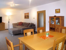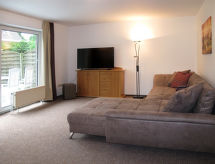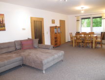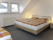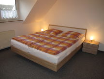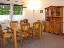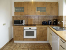 "Ferienhaus Sonne", 4-Zimmer-Doppelhaushälfte 112 m2 auf 2 Stockwerken. Gemütlich eingerichtet: Wohn-/Esszimmer mit Sat-TV. Ausgang zur Terrasse. Küche (Backofen, Geschirrspüler, 4 Glaskeramikherd Platten, Toaster, Wasserkocher, Mikrowelle, Tiefkühler, elektrische Kaffeemaschine). Sep. WC. Obergeschoss: 1 abgeschrägtes Doppelzimmer. 1 abgeschrägtes Zimmer mit 1 Bett und 1 Doppelbett. 1 abgeschrägtes Zimmer mit 2 Betten. Bad/Dusche/WC. Rasen. Terrassenmöbel. Zur Verfügung: Waschmaschine, Kinderhochstuhl, Babybett. Internet (Wireless LAN, gratis). Parkplatz (überdacht). Bitte beachten: Nichtraucher-Unterkunft. Rauchmelder. Es gibt eine Terrasse. Es hat ein überdachter Parkplatz. Das Haus ist auch mit einem drahtlosen lokalen Netzwerk (WLAN) ausgestattet. Es hat ein Ofen.- Charakteristik des Mietobjekts