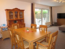 Wiarden 6 km von Horumersiel: Doppelhaus. 8 km vom Zentrum von Hooksiel, 16 km vom Zentrum von Jever, 6 km vom Meer, in einer Sackgasse. Zur Mitbenutzung: gepflegter Garten mit Rasen und Bäumen. Im Hause: Zentralheizung. Supermarkt 3 km, Bahnstation "Jever" 16 km, Sandstrand "Horumersiel" 6 km, Freibad 6 km, Hallenbad 6 km, 3 km. Jacht-Hafen 6 km, Golfplatz (18 Loch) 22 km.Interior