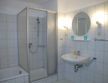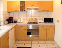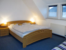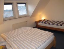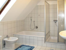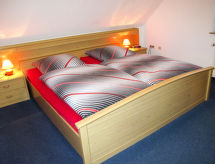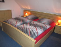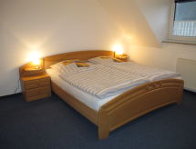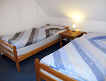 "Ferienhaus Meer", 4-Zimmer-Doppelhaushälfte 112 m2 auf 2 Stockwerken. Gemütlich eingerichtet: Wohn-/Esszimmer mit Sat-TV. Ausgang zur Terrasse. Küche (Backofen, Geschirrspüler, 4 Glaskeramikherd Platten, Toaster, Wasserkocher, Mikrowelle, Tiefkühler, elektrische Kaffeemaschine). Sep. WC. Obergeschoss: 1 abgeschrägtes Zimmer mit 1 Doppelbett. 1 abgeschrägtes Zimmer mit 1 Betten und 1 Doppelbetten. 1 abgeschrägtes Zimmer mit 2 Betten. Bad/WC. Terrasse, Rasen. Terrassenmöbel, Liegestühle (2). Zur Verfügung: Waschmaschine, Kinderhochstuhl, Babybett. Internet (Wireless LAN, gratis). Parkplatz (überdacht, 1 Auto). Bitte beachten: Nichtraucher-Unterkunft. Eine Terrasse ist verfügbar. Es hat ein überdachter Parkplatz. Sollte das Wetter einmal nicht mitspielen, ist auch ein Fernseher vorhanden. Ein Mikrowellenofen ist auch vorhanden.- Ausstattung