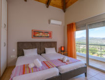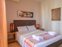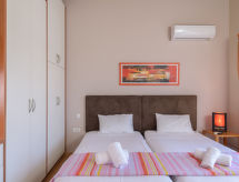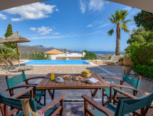 "St. Nicolas View", 3-Zimmer-Villa 117 m2 auf 2 Stockwerken. Geräumig und hell, sehr komfortabel eingerichtet: grosses Wohn-/Esszimmer mit Sat-TV (Flachbildschirm), Klimaanlage. Ausgang zur Terrasse, zum Schwimmbad. Offene Küche (Backofen, Geschirrspüler, 4 Glaskeramikherd Platten, Toaster, Wasserkocher, Mikrowelle, elektrische Kaffeemaschine) mit Esstisch. Sep. WC. Obergeschoss: (geländerlose Treppe) 1 Doppelzimmer mit 1 Doppelbett und Sat-TV (Flachbildschirm), Klimaanlage. Ausgang zum Balkon. 1 Doppelzimmer mit 2 Betten und Klimaanlage. Ausgang zum Balkon. Dusche/WC. Grosser Balkon, grosse Terrasse. Terrassenmöbel, Balkonmöbel, Gartengrill, Sitzplatz. Panoramasicht auf das Meer und die Stadt. Zur Verfügung: Waschmaschine, Bügeleisen, Haartrockner. Internet (Wireless LAN, gratis). Bitte beachten: Nichtraucher-Haus. Rauchmelder, Feuerlöscher. 1040K91003009601 Unser Garten wartet auf Sie für einen Sprung in die Entspannung. Überdies werden sie verwöhnt mit einem freien Blick auf das Meer. Auch wenn es in der Nacht noch so heiss bleibt, ist es schön, kann man die Klimaanlage einschalten und in einem angenehm temperierten Raumklima schlafen. Geeignet für ein Barbecue. Ein privater Pool ist vorhanden. Mit Reinigung.- Ausstattung