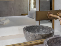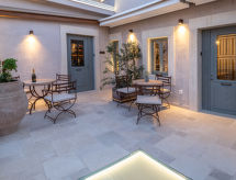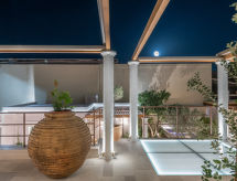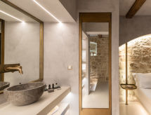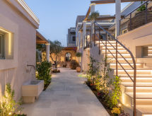 Moderne, schöne Residenz "Inotropes Boutique Suites", auf 2 Stockwerken. 6 Wohnungen in der Residenz. Im Ortsteil Epano Archanes, ruhige, sonnige Lage, 16 km vom Meer, 16 km vom Strand. Zur Mitbenutzung: schöner, gepflegter Terrassengarten mit Blumen und Bäumen. Wohnungsreinigung täglich. Frühstück möglich auf Anfrage (extra). Öffentliche Parkplätze 100 m auf der Strasse. Lebensmittelgeschäft, Supermarkt, Restaurant 400 m, Bäckerei 110 m, Café 400 m, Sandstrand "Karteros" 16 km. Golfplatz (18 Loch) 39.3 km, Reitstall 15.5 km. Nahe gelegene Sehenswürdigkeiten: Archaeological Museum of Archanes 230 m, Museum of Cretan History & Folklore 300 m, Nikos Kazantzakis Museum 6.8 km, Minoan Palace of Knossos 9.6 km, Minoan Villa of Vathypetro 4.6 km, Archaeological Museum of Heraklion 16.1 km. Bitte beachten: nicht geeignet für Kinder unter 17 Jahren. Der Besitzer akzeptiert keine Jugendgruppen.Interior