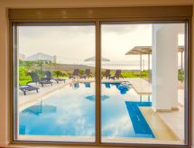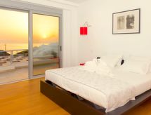 "Stella", 4-Zimmer-Villa. Geräumig und hell, sehr modern eingerichtet: Wohn-/Esszimmer mit Esstisch und Sat-TV (Flachbildschirm), CD. Ausgang zum Schwimmbad. Grosse Küche (Backofen, Geschirrspüler, 4 Glaskeramikherd Platten, Mikrowelle, Tiefkühler, elektrische Kaffeemaschine). Ausgang zum Garten, zum Schwimmbad. Sep. WC. Obergeschoss: 2 Doppelzimmer, jedes Zimmer mit 1 Doppelbett und Klimaanlage. Ausgang zum Balkon. 1 Doppelzimmer mit 2 Betten, Bad und Klimaanlage. Ausgang zum Balkon. Bad. Liegestühle. Herrliche Panoramasicht auf das Meer, die Berge und die Landschaft. Zur Verfügung: Waschmaschine, Wäschetrockner, Haartrockner. Internet (Wireless LAN, gratis). Bitte beachten Sie: Das Schlafzimmer mit 2 Betten und eines der beiden Schlafzimmer mit einem Doppelbett sind miteinander verbunden. Einige Schränke sind für den Eigengebrauch vorgesehen und daher abgeschlossen. 1069235 Badewanne im Haus. Mit Aussicht aufs Meer. Ein Balkon ist verfügbar. Geeignet für ein Barbecue. Ein Babybett ist vorhanden. Es hat ein drahtloses lokales Netzwerk (WLAN). Ein Wäschetrockner ist verfügbar.- Ausstattung