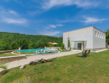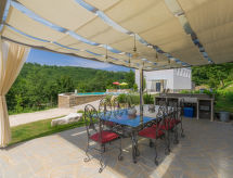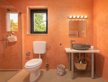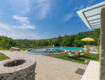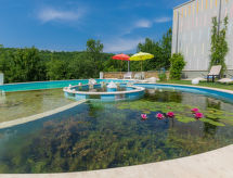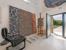 Momjan 5 km von Buje: Moderne Villa "Studio Gallery Bura", auf 2 Stockwerken. 400 m vom Zentrum von Momjan, 17 km vom Zentrum von Umag, ruhige, sonnige Lage am Hang, 17 km vom Meer, im Grünen. Zur Alleinbenutzung: Grundstück 10'000 m2, Garten mit Rasen und Bäumen, Schwimmbad (40 m2, 135 cm tief, saisonale Verfügbarkeit: 15.Mai. - 01.Okt.) mit Innentreppe. Ungleichmässige Schwimmbadform, Aussendusche, Terrasse (35 m2), Gartenmöbel, Grill. Im Hause: Internetzugang, Waschmaschine. Zufahrt bis zum Haus (250 m Naturweg). Parkplatz (für 4 Autos) beim Haus auf dem Grundstück. Einkaufsgeschäft 400 m, Supermarkt 5 km, Restaurant 200 m, Kieselstrand 17 km. Wanderwege ab Haus 100 m, Radweg 150 m. Der Besitzer akzeptiert keine Jugendgruppen. Das Schwimmbad, für den privaten Gebrauch, ist ein Bio-Schwimmteich.Interior