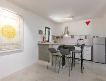 4-Zimmer-Villa 150 m2 auf 2 Stockwerken. Schön eingerichtet: Wohn-/Esszimmer mit Klimaanlage. 1 offenes Zimmer mit 1 franz. Bett (140 cm, Länge 200 cm). Offene Küche (Backofen, 2 Glaskeramikherd Platten, Wasserkocher, Tiefkühler, elektrische Kaffeemaschine). Dusche/WC. Obergeschoss: 2 Zimmer, jedes Zimmer mit 1 franz. Bett (160 cm, Länge 200 cm), Dusche/WC und Klimaanlage. Liegestühle. Zur Verfügung: Haartrockner. Internet (Wireless LAN, gratis). 1 Haustier/Hund erlaubt. Nicht nur sind hier Haustiere erlaubt, sondern ihr Hund ist auch ein gern gesehener Feriengast. Geeignet zum Grillen. Ein privater Pool ist verfügbar. Ein Internetanschluss ist verfügbar.- Ausstattung