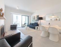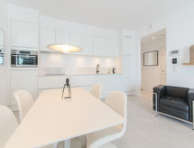 "Suite 3.06", 2-Zimmer-Wohnung 80 m2 im 3. Stock. Komfortabel und modern eingerichtet: Eingang mit sep. WC, TV, Flachbildschirm und Radio. Offenes Wohn-/Esszimmer mit 1 Diwanbett (140 cm, Länge 200 cm), Esstisch, TV, Digital-TV und Internationale TV-Sender. Ausgang zum Balkon. 1 Doppelzimmer mit 1 Doppelbett (1 x 180 cm, Länge 200 cm), Dusche. Offene Küche (Geschirrspüler, 4 Induktionskochplatten, Toaster, Wasserkocher, elektrische Kaffeemaschine, Kombinationsmikrowelle). Balkon 8 m2, Nordwestlage. Balkonmöbel. Seitliche Sicht auf den Hafen. Zur Verfügung: Haartrockner. Internet (Wireless LAN, gratis). Garage Nr. 41 (1 Auto). Bitte beachten: Nichtraucher-Haus. Rauchmelder, Feuerlöscher. Residenz. Bequem mit dem Lift bis vor die Haustür. Auf dem Spielplatz können sich die Kinder austoben. Das Haus ist auch mit einem Geschirrspüler ausgestattet.- Charakteristik des Mietobjekts