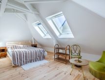 Einfamilienhaus "Sunny Lodge", auf 2 Stockwerken. Im Ort, 850 m vom Zentrum von Cabourg, 200 m vom Meer, 200 m vom Strand. Zur Alleinbenutzung: Garten 400 m2 (eingezäunt), Parkplatz auf dem Grundstück. Einkaufsgeschäft, Lebensmittelgeschäft 850 m, Supermarkt 3.6 km, Sandstrand 200 m, Thermalbad "Thalazur" 2.1 km. Sporthafen 2.5 km, Golfplatz (18 Loch) 4.1 km, Tennis 1.4 km, Minigolf 300 m. Nahe gelegene Sehenswürdigkeiten: Deauville 25 km, Honfleur 48 km, Le mémorial de Caen 35 km, Les plages du débarqement 64 km. Eine wunderschöne Umgebung für Ausritte und eine freundliche Atmosphäre erwarten Pferdesportfreunde. was will man als Ross oder Reiter mehr? Tennisspielen in den Ferien ist eine attraktive Abwechslung. Deshalb darf auch ein Tennisplatz bei uns nicht fehlen.Interior