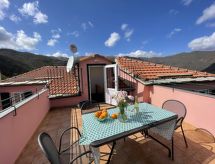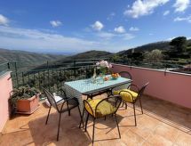 "Superba Vista", 3-Zimmer-Wohnung 80 m2 im 1. Stock. Geschmackvoll und gemütlich eingerichtet: 1 Doppelzimmer. 1 Zimmer mit 2 Betten (90 cm). Wohnküche (Gasherd, 4 Flammen, Toaster, Tiefkühler, elektrische Kaffeemaschine, Kapseln für die Kaffeemaschine (Lavazza)) mit Esstisch, Sat-TV. Bad/Bidet/WC. G-Heizung. Komfortable Einrichtung im Landhausstil. Terrasse 12 m2. Terrassenmöbel, Gartengrill, Liegestühle. Sehr schöne Panoramasicht auf das Meer, das Tal und die Ortschaft. Zur Verfügung: Waschmaschine, Bügeleisen. Internet (Wireless LAN, gratis). CITRA:008047-AGR-0006 Ein Restaurant wird in direkter Nähe betrieben. Ihre Ferienunterkunft in Ligurien Riviera Ponente mit Halbpension. Auf Anfrage ist es möglich, ein Frühstück zu bestellen. Überrascht Sie mit einer herrlichen Aussicht aufs Meer. Dank der Waschmaschine die Sie vorfinden, sind weniger Kleider zum mitschleppen.- Ausstattung