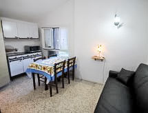2-Zimmer-Wohnung 45 m2 im 2. Stock. Zweckmässig eingerichtet: 1 kleines Zimmer mit 1 Bett. 1 Doppelzimmer. Wohnküche (4 Kochplatten, Backofen, Mikrowelle, Tiefkühler, elektrische Kaffeemaschine) mit 1 Diwanbett (140 cm). Dusche/Bidet/WC. G-Heizung (extra). Heizung nur verfügbar von 01.11. bis 31.03. Grosse Terrasse 30 m2. Terrassenmöbel. Schöne Panoramasicht auf das Meer und die Berge. Zur Verfügung: Fliegengitter. Internet (Wireless LAN, gratis). 2 Haustiere/Hunde erlaubt. Die Türe des Badezimmers ist 1.65 m hoch, das Badezimmer selbst zwischen 1.5 und 2 m. CITRA:008065-LT-0071 Überrascht Sie mit einer herrlichen Aussicht aufs Meer.- Ausstattung
