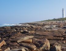 6-Zimmer- Haus (freistehend), für 7 Personen, 225 m2 auf 5 Stockwerken, gemütlich eingerichtet. Wohn-/Esszimmer mit Sat-TV, DVD, Radio, Stereo-Anlage, CD-Player, offenem Kamin und Esstisch. Rauchen nicht erlaubt. Internet (Wireless LAN [WLAN]). Schlafzimmer mit 1 Doppelbett. Schlafzimmer mit 1 Doppelbett. Schlafzimmer mit 1 Normalbett und 1 Etagenbett. Schlafzimmer mit 1 Doppelbett. Offene Küche mit 4 - Platten Herd, Mikrowelle, Backofen, Geschirrspüler, Kühlschrank und Tiefkühler. Bad, Dusche und sep. WC. Balkon 20 m2, Terrasse 10 m2, Gartensitzplatz 20 m2, Terrassenmöbel, 4 Liegestühle. Weitere Ausstattung: Kinderhochstuhl, Telefon, Haartrockner, Bügeleisen, Waschmaschine. 2 sep. Badezimmer mit Badewanne ohne WC, 1 sep. Raum mit 1 Dusche ohne WC, 2 sep. WC Räume. Vom grossen 3 Stern Ferienhaus, erhöhter gebaut, überschaut man die Bucht von Jefferys Bay. Die Aussicht von der Terrasse ist atemberaubend. Das Wohnquartier sehr ruhig und das Haus ist sehr gut traditionelle und rustikal eingerichtet, sehr familienfreundlich. Im gesamten Haus und deren grosszügigen Einrichtungen, Schlafzimmer, Badezimmer, Wohnbereich (speziell auch in der Küche) gibt es nix auszusetzten - alles ist reichlich vorhanden. Zudem wird das Haus sehr gut unterhalten und technisch umsorgt von Schlüsselhalterpaar, welches gleich nebenan wohnt. Der völlig perfekte, sichere und sorgenlose Aufenthalt ist somit garantiert, Das Sicherheitsunternehmen ADT, der größte örtliche Sicherheitsdienst, schützt das Haus TheGEM VACATION RENTAL aus Sicherheitsgründen rund um die Uhr. Es hat eine Veranda. Ein Geschirrspüler ist verfügbar. Sollte das Wetter einmal nicht mitspielen, ist auch ein Fernseher vorhanden. Es gibt ein DVD Spieler.- Charakteristik des Mietobjekts
