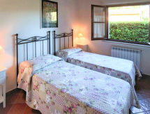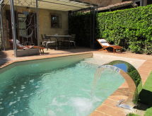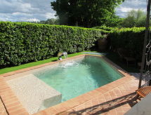3-Zimmer-Doppelhaushälfte 85 m2, im Erdgeschoss. Geräumig und hell, schön und geschmackvoll eingerichtet: offenes grosses Wohnzimmer mit offenem Kamin und Sat-TV (Flachbildschirm), DVD. Ausgang zum Gartensitzplatz. Offenes Esszimmer. 1 Zimmer mit begehbarer Kleiderschrank mit 1 franz. Bett (160 cm). 1 Zimmer mit 2 Betten (80 cm). Offene Küche (Backofen, Geschirrspüler, 5 Flammen, Toaster, Wasserkocher, Mikrowelle, Tiefkühler, elektrische Kaffeemaschine) mit Esstisch. Ausgang zur Terrasse. Sep. WC, Bad/Dusche/Bidet/WC, Whirlbadewanne. G-Heizung. Grosse Terrasse überdacht, Garten 85 m2. Terrassenmöbel, Gartengrill (mobil), Liegestühle (4), Abstellkammer. Zur Verfügung: Waschmaschine, Bügeleisen, Kinderhochstuhl, Babybett, Haartrockner. Internet (Wireless LAN, gratis). Parkplatz (überdacht, 2 Autos) in 50 m. Bitte beachten: Nichtraucher-Unterkunft. Eigener Eingang. Es werden keine zusätzlichen Gebühren vor Ort fällig, ausgenommen der örtlichen Kurtaxe. Für Ihr Wohlbefinden geniessen den Whirlpool in der Urlaubszeit. Es hat eine Terrasse. Geeignet zum Grillen. Das Haus ist auch mit einem Babybett ausgestattet. Es hat ein überdachter Parkplatz. Es gibt ein privater Pool. Ein DVD Spieler ist verfügbar.- Charakteristik des Mietobjekts