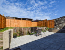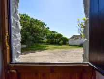 4-Zimmer-Landhaus. Komfortabel und gemütlich eingerichtet: Wohnzimmer mit TV, CD und DVD. Küche (4 Kochplatten, Backofen, Mikrowelle, Tiefkühler, Grill) mit Esstisch. Obergeschoss: 1 Doppelzimmer mit 1 Doppelbett. 1 Doppelzimmer mit 2 Betten. Bad/Dusche/WC. Heizung. Gartensitzplatz, Garten. Terrassenmöbel. Zur Verfügung: Waschmaschine. Bitte beachten: Nichtraucher-Haus. 1 Haustier/Hund erlaubt. TV nur EN. Das Haus ist auch mit einer Veranda ausgestattet. Es hat ein DVD Spieler.- Charakteristik des Mietobjekts