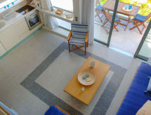 "Thea", 2-Zimmer-Villa 60 m2 auf 2 Stockwerken. Hell, komfortabel und schön eingerichtet: offenes Wohn-/Schlafzimmer mit 2 Diwanbetten und Sat-TV (Flachbildschirm), Radio. Ausgang zum Balkon. Offene Küche (Backofen, 4 Glaskeramikherd Platten, Mikrowelle, elektrische Kaffeemaschine, Kapseln für die Kaffeemaschine (Nespresso) extra). Dusche/WC. Klimaanlage. Unteres Geschoss: (geländerlose Treppe) 1 Doppelzimmer mit 1 Doppelbett. Ausgang zur Terrasse. Klimaanlage. Balkon, kleine Terrasse. Schöne Sicht auf das Meer und die Landschaft. Zur Verfügung: Waschmaschine, Safe, Bügeleisen, Haartrockner. Internet (Wireless LAN, gratis). Bitte beachten: Nichtraucher-Haus. 1040 K910 0298 2701 Gewährt spektakulärer Aussicht auf das Meer. Damit es auch im Sommer angenehm kühl bleibt, verfügt dieses Ferienobjekt über eine Klimaanlage. Ein Kinderbecken ist verfügbar. Mit Reinigung.- Ausstattung