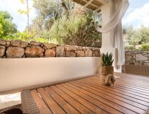 "Tia Ranch II", 3-Zimmer-Doppelhaushälfte 90 m2, im Erdgeschoss. Objekt geeignet für 6 Erwachsene. Komfortabel und rustikal eingerichtet: Wohn-/Esszimmer mit 2 Betten und TV. 1 Doppelzimmer. 1 Zimmer mit 2 Betten. Kochnische (4 Kochplatten, Backofen, Geschirrspüler, Tiefkühler). 2 Duschen/Bidet/WC. Heizung, Klimaanlage. Heizung nur verfügbar von 01.11. bis 31.03. Gartensitzplatz teilweise überdacht. Terrassenmöbel, Gartengrill. Zur Verfügung: Waschmaschine, Safe, Bügeleisen, Fliegengitter, Babybett bis 2 Jahre, Haartrockner. Internet (Wireless LAN, gratis). Parkplatz Nr. 1. 1 Haustier/Hund erlaubt. LE07506332000009648 Hier wo Hunde erlaubt und willkomme Gäste sind lässt es sich gut ergehen. Die Entspannung und das Lebensgefühl im Garten sind im Urlaub unverzichtbar. Ein Pool ist verfügbar. Frische Bettwäsche verfügbar. Mit Reinigung.- Ausstattung
