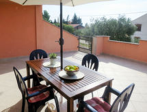 "Tomislav (SRD453)", 3-Zimmer-Wohnung 60 m2, im erhöhten Erdgeschoss. Wohn-/Esszimmer mit 1 Doppeldiwanbett (160 cm, Länge 200 cm), Sat-TV und Klimaanlage. Ausgang zur Terrasse. 1 Zimmer mit 2 Betten (90 cm, Länge 200 cm). 1 Zimmer mit 1 franz. Bett (160 cm, Länge 200 cm). Offene Küche (1 Kochplatte, Backofen, 3 Flammen, Toaster, Wasserkocher, Mikrowelle, Tiefkühler, elektrische Kaffeemaschine). Dusche/WC. Terrasse 30 m2. Terrassenmöbel. Zur Verfügung: Waschmaschine. Internet (Wireless LAN, gratis). Maximal 2 Haustiere/Hunde erlaubt. Es gibt eine Terrasse.- Ausstattung