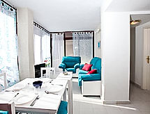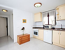 "Topacio IV", 3-Zimmer-Wohnung 63 m2 im 4. Stock. Hell, zweckmässig und schön eingerichtet: Wohn-/Esszimmer mit Digital-TV, Internationale TV-Sender, Klimaanlage, Warmluftheizung und Boiler. Ausgang zur Terrasse. 1 Zimmer mit 2 Betten (90 cm, Länge 180 cm). 1 Zimmer mit 1 franz. Bett (135 cm, Länge 190 cm). Offene Küche (Backofen, 3 Glaskeramikherd Platten, Mikrowelle, elektrische Kaffeemaschine) mit Esstisch. Bad/Bidet/WC. Kleine Terrasse. Terrassenmöbel. Seitliche Sicht auf das Meer. Zur Verfügung: Waschmaschine, Bügeleisen. Internet (Wireless LAN, gratis). Garage Nr. 35. Bitte beachten: geeignet für Familien. Parkplatz nur für kleine Wagen. AT-440236-A Eine Badewanne ist vorhanden. Sie gelangen mit dem Aufzug zur Etage der Wohnung. Die drückende Hitze kann Körper und Gemüt stark belasten. Deshalb sind die Räumlichkeiten mit Klimaanlagen ausgestattet. Es hat ein Ofen.- Ausstattung