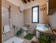 Eingebettet in Olivenhaine und Lavendelfelder steht das schöne rustikale Landhaus mit 3 völlig separaten Wohnungen nicht weit von der Küste (7,5km) . Ein idealer Ort zum relaxen und geniessen. Dreifamilienhaus auf 2 Stockwerken, umgeben von Bäumen und Feldern. 3.5 km vom Zentrum von Bibbona, 9 km vom Zentrum von Cecina, alleinstehende, ruhige Lage, 7.5 km vom Meer. Zur Mitbenutzung: naturbelassenes Grundstück, Garten (nicht eingezäunt). In der Anlage: Empfang, Restaurant. Frühstück auf Anfrage (extra). Zufahrt (1.2 km Naturweg). Parkplatz (überdacht) beim Haus. Lebensmittelgeschäft 3.5 km, Supermarkt 8 km, Bäckerei 3.5 km, Sandstrand "Marina di Cecina" 7.5 km, Thermalbad "Calidario" 36 km. Jacht-Hafen 25 km. Nahe gelegene Sehenswürdigkeiten: Bolgheri 8 km, Pisa 65 km, Livorno 45 km, Firenze 120 km. Auf dem Grundstück Tierhaltung. Ab Hof Verkauf von bäuerlichen Produkten.Interior