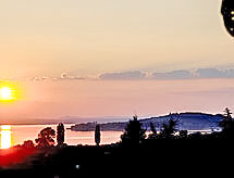3-Zimmer-Doppelhaushälfte 70 m2 im 2. Stock. Rustikal eingerichtet: grosses Wohnzimmer mit offenem Kamin, Schwedenofen und Sat-TV. 1 kleines Doppelzimmer mit Bad/Bidet/WC. 1 Zimmer mit 1 Bett, 1 Doppelbett und Dusche/Bidet/WC. Kochnische (4 Kochplatten, Backofen, Geschirrspüler, Tiefkühler) mit Esstisch. Kleiner Balkon, Garten. Terrassenmöbel, Sitzplatz. Sicht auf den See. Zur Verfügung: Fliegengitter. Internet (Wireless LAN, gratis). 1 kleines Haustier/Hund erlaubt. Bitte beachten: das Restaurant ist auch für auswärtige Gäste offen. Haustiere sind erlaubt. Lassen Sie Ihren Hund mitschnuppern an den schönsten Tagen im Jahr. In der Anlage dieser Urlaubsunterkunft ist unmittelbar auch ein Restaurant untergebracht. Im Idyllischen Garten geniessen Sie Erholung als ein Naturerlebnis. Es hat eine Veranda. Geeignet für ein Barbecue. Das Haus ist auch mit einem Parkplatz ausgestattet. Es hat ein Pool. Das Haus ist auch mit einem privaten Pool ausgestattet. Eine Waschmaschine ist zum gebrauch vorhanden.- Charakteristik des Mietobjekts