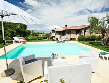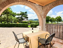Ein typisches Haus, aus dem frühen 19. Jahrhundert, in der Nähe des Sees Trasimeno, mit einem neu erbauten Schwimmbad, das von viel Grün, Ruhe und von jahrhundertealten Olivenbäumen umgeben ist und von dem aus die Gäste einen herrlichen Blick auf den See geniessen können. Zweifamilienhaus "Trasimeno link". Sonnige Lage, 450 m vom See, in einer Sackgasse. Zur Alleinbenutzung: Naturgarten 350 m2, Schwimmbad (4 x 6 m, 135 cm tief, saisonale Verfügbarkeit: 01.Mai. - 14.Okt.). Gartenmöbel, Grill. Im Hause: Restaurant, Internetzugang, Waschmaschine. Parkplatz (für 2 Autos) beim Haus. Lebensmittelgeschäft 2 km, Supermarkt 6 km, Restaurant 50 m, Sandstrand 300 m, Thermalbad "Rapolano Terme" 60 km, See Trasimeno 300 m. Nahe gelegene Sehenswürdigkeiten: Passignano sul Trasimeno 15 km, Perugia 25 km, Cortona 35 km. Das nahe gelegene Zentrum «Terme di Rapolano (60 km) bietet die Möglichkeit, auch in der Nebensaison, erholsame Ferien zu verbringen. Einfach mal wieder auf einer positiven Welle surfen? Der Ort lädt zum Wellenritt ein.Interior