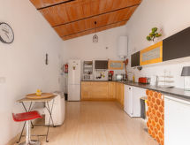 "Ty Gwen", 5-Zimmer-Reihenhaus 102 m2. Einfach eingerichtet: Wohnzimmer mit Kabel-TV (Flachbildschirm). 1 Zimmer mit 1 Bett (140 cm, Länge 190 cm), Dusche/WC. Ausgang zur Terrasse. 1 Zimmer mit 1 Bett (140 cm, Länge 190 cm). 1 Zimmer mit 2 Betten (90 cm, Länge 190 cm). Offene Küche (Backofen, 4 Glaskeramikherd Platten, Toaster, Wasserkocher, Mikrowelle, Tiefkühler, elektrische Kaffeemaschine) mit Esstisch. Dusche/WC, sep. WC. Keine Heizmöglichkeit. Terrasse 39 m2. Terrassenmöbel, Liegestühle (5), Sitzplatz. Zur Verfügung: Waschmaschine, Bügeleisen, Kinderhochstuhl, Babybett, Haartrockner. Internet (Wireless LAN, gratis). 124986/AL Eine Veranda ist verfügbar. Es hat ein Babybett. Ein Internetanschluss ist vorhanden.- Ausstattung