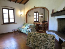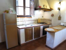 Das rustikale Haus ULIVO steht ca. 700 m unterhalb von Montescudaio in Richtung Cecina mit schönem Blick auf das Cecina-Tal. Nächste Einkaufsmöglichkeit 700 m. Die Straße zum Ort verläuft ca. 50 m oberhalb (nicht störend). Zufahrt ca. 50 m über Feldweg. Parkplatz. Ca. 1,5 ha großes, teilumzäuntes, überwiegend naturbelassenes Hanggrundstück mit Macchia, Wiese und Olivenbäumen. Vor dem Haus Rasenfläche mit Freisitz und Sonnenliegen, außerdem überdachter Freisitz mit Außengrill auf der Hausrückseite. Zu der möblierten Dachterrasse (ohne Geländer) führt eine Außentreppe. Gepflegte, teils moderne, teils rustikale Einrichtung. Teilweise Holzbalkendecken. Sat-TV. Fliesenböden. Kamin im Wohnraum. Heizmöglichkeit mit Pelletofen in der Küche (Warmluftauslässe im Schlafzimmer).Interior