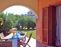 "Vecchio Stazzo", 3-Zimmer-Wohnung 45 bis 60 m2, im Erdgeschoss. Schön eingerichtet: Wohn-/Schlafzimmer mit 1 Doppeldiwanbett, Esstisch und TV. 1 Zimmer mit 1 Doppelbett. 1 Zimmer mit 2 Betten. Kochnische (4 Flammen, Wasserkocher, Mikrowelle). Dusche/WC. E-Heizung, Klimaanlage. Terrasse. Terrassenmöbel. Zur Verfügung: Waschmaschine, Babybett. Internet (Wireless LAN, gratis). Der prachtvolle Garten verspricht unvergessliche Ferien. Geeignet zum Grillen. Es hat ein Internetanschluss.- Ausstattung