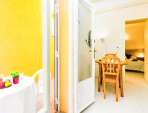 Canyelles Petites: Gemütliche, einfache Ferienanlage "Velazquez". Canyelles Petites, im Ort, 4 km vom Zentrum von Roses, ruhige, sonnige Lage am Hang, 60 m vom Meer, 60 m vom Strand, Strasse zu überqueren. Zur Mitbenutzung: Schwimmbad eckig (10 x 4 m, 80 - 180 cm tief, saisonale Verfügbarkeit: 12.Mai. - 30.Sep.) mit Innentreppe. Im Hause: Wireless LAN. Einkaufsgeschäft, Lebensmittelgeschäft, Supermarkt 150 m, Restaurant 100 m, Bar, Café 20 m, Fußgängerzone 30 m, Bushaltestelle 100 m, Sandstrand "Canyelles Petites", Badebucht 60 m. Sporthafen 3 km, Golfplatz 20 km, Tennis 5 km, Reitstall 10 km. Nahe gelegene Sehenswürdigkeiten: Parque Acuático Aquabrava Roses 6 km, Skydive y túnel del viento Empuriabrava 11 km, Cadaqués 18 km, Castillo y casino de Perelada 25 km, Monasterio de Sant Pere de Rodes 24 km, Museo Dalí Figueres 24 km. Bitte beachten: Weitere Unterkünfte sind buchbar. Die Wohnungen sind terrassiert und hangabwärts angelegt. Die Terrassen der Wohnungen sind miteinander verbunden. Die Wohnungen und das Schwimmbad sind über eine Treppe von oben herab erreichbar. 200 m vom Strand von Canyelles Petites gelegen, einer der schönsten Strände von Roses. Bitte beachten: In der Wohnanlage wohnen hauptsächlich Familien. Gemäss dem Reglement der Siedlung wird ab 23 Uhr Ruhe verlangt. Garage Privat ausser ref es9410.383.3 Bitte beachten : Wohnungen ohne Heizung. Eine beliebte Surfdestination mit erfrischenden Wellen. Die Wellenreiter freut es hier zu sein.Interior