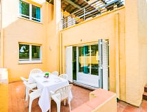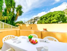 4-Zimmer-Wohnung 83 m2. Zweckmässig eingerichtet: Wohn-/Esszimmer mit Sat-TV und Digital-TV (Flachbildschirm). Ausgang zur Terrasse. 1 Zimmer mit 2 Betten. 2 Zimmer, jedes Zimmer mit 1 franz. Bett (150 cm). Küche (4 Glaskeramikherd Platten, Mikrowelle, Tiefkühler, elektrische Kaffeemaschine). Dusche/WC. Keine Heizmöglichkeit. Terrasse. Terrassenmöbel. Zur Verfügung: Waschmaschine. Internet (Wireless LAN, gratis). Garage Nr. 9. Bitte beachten: Parkplatz nur für kleine Wagen. TV nur ES, DE. Bitte beachten : Wohnungen ohne Heizung. Maße der Garage von Wand zu Wand: Länge 4,80 x Breite 2,40. HUTG007507 Eine Dusche ist präsent und die tägliche Reinigung unter der Brause braucht nicht viel Zeit, so bleibt mehr für den Urlaub. Eine Terrasse ist vorhanden. Das Haus ist auch mit einem Pool ausgestattet. Informieren Sie sich im über den vorhandenen TV Apparat. Ob lokale Neuigkeiten oder internationale Nachrichten, mit dem Fernsehen sind sie stehts gut informiert. Dank der Waschmaschine die Sie vorfinden, sind weniger Kleider zum mitschleppen.- Ausstattung