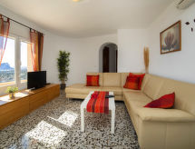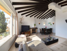 Benissa Costa: Einfamilienhaus "Villa Aguila". 6.2 km vom Zentrum von Moraira, 11.6 km vom Zentrum von Calpe, im Bezirk Montemar, ruhige, sonnige Lage am Hang, verkehrsberuhigte Zone, 2.6 km vom Meer. Zur Alleinbenutzung: Grundstück 937 m2, Terrassengarten, Schwimmbad eckig (5 x 10 m, 100 - 220 cm tief, saisonale Verfügbarkeit: 01.Jan. - 31.Dez.). Aussendusche, Gartenmöbel. Treppenweg (25 Stufen) bis zum Haus. Parkplatz beim Haus. Supermarkt 1.7 km, Restaurant 1.7 km, Bar 1.7 km, Sandstrand "Moraira" 5.8 km, Badebucht 2.6 km. Golfplatz (9 Loch) 2.8 km. Nahe gelegene Sehenswürdigkeiten: Terra Mítica, Aqualandia, Terra Natura, Aquanatura, Benidorm Palace (Benidorm). In der herrlichen Natur zwischen saftigen Almwiesen, rauschenden Wälder, umgeben von der eindrucksvollen Bergwelt lädt der Ort zum Wandern ein.Interior