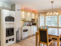 65 km nordöstlich von Kuopio, See Syväri 800 m, ohne eigenes Ufer, öffentliches Ufer 1.2 km, kein Boot. In der Nähe des Tahko-Zentrums befindet sich diese hochwertige und gemütliche Blockvilla für 10 Personen. Diese Villa wurde 2001 erbaut, im Erdgeschoss: 1 Schlafzimmer mit Doppelbett, 2. Schlafzimmer mit Doppelbett und Babybett. Geräumige Wohnküche mit Flachbildfernseher und Kamin mit Backofen. In einem grossen Teil der Küche gibt es gute Ausstattung, auch für mehrere Köche. Sauna mit Elektroheizung, Hauswirtschaftsraum, Toilette, Luftwärmepumpe und grosse Terrasse. Im Obergeschoss: 1. Schlafzimmer mit Doppelbett und einem Einzelbett, 2. Schlafzimmer mit Doppelbett und 2 Einzelbetten. Zweiter Flachbildfernseher in offenem Loungebereich des Dachbodens. Separates WC. Hochwertige Ferienvilla Aurora in der Nähe von den Dienstleistungen des Tahko Skizentrums, mit geräumigen und komfortablen Lounges für grössere Familien, Paare oder Firmen. Schöne Aussicht von der grossen Terrasse auf Skipisten und Gasgrill (im Sommer). Lager. Haustiere sind nicht erlaubt. 1.2 km zu den Pisten über die Tahkonlahti "Skybridge" und ca. 1.9 km auf der Strasse, See Syväri 0.8 km, öffentliches Ufer 1.2 km, Nilsiä 13 km, Kuopio 65 km, Matkus Einkaufszentrum 70 km. Jede Buchung beginnt um 16:00 Uhr und endet um 12:00 Uhr (auch an Wochenenden). Die Endreinigung ist im Mietpreis enthalten. Frisch geduscht und duftend kann man entspannt zum Ferienprogramm übergehen, denn eine Dusche ist vorhanden. Eine Feuerstelle ist verfügbar. Das Haus ist auch mit einer Sauna ausgestattet. Unabhängiger sind Sie mit der eigens vorhandenen Waschmaschine.- Ausstattung