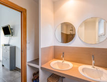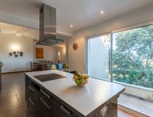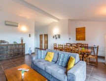 4-Zimmer-Haus 130 m2 auf 2 Stockwerken. Geräumig: grosses Wohn-/Esszimmer mit 1 Doppeldiwanbett (160 cm, Länge 190 cm), offenem Kamin (nur Deko), TV (Flachbildschirm), Klimaanlage. Ausgang zur Terrasse. 1 Zimmer mit 1 franz. Bett (160 cm, Länge 190 cm), Dusche/WC und TV (Flachbildschirm), Klimaanlage. Offene Küche (Backofen, Geschirrspüler, 4 Induktionskochplatten, Wasserkocher, Mikrowelle, Tiefkühler, elektrische Kaffeemaschine). Ausgang zur Terrasse. Sep. WC. Unteres Geschoss: 2 Zimmer mit Panoramafenster, jedes Zimmer mit 1 franz. Bett (140 cm, Länge 190 cm), Dusche/WC. Kleiner Balkon, Terrasse 13 m2, Südlage. Terrassenmöbel, Liegestühle (2). Eingeschränkte Sicht auf das Meer. Zur Verfügung: Waschmaschine, Bügeleisen, Haartrockner. Internet (Wireless LAN, gratis). Bitte beachten: Nichtraucher-Unterkunft. 1 kleines Haustier/Hund erlaubt. Rauchmelder. Gerade nach einem erlebnisreichen Ferientag hilft ein kurzes Brausebad um sich zu erfrischen. Dank der verfügbaren Dusche ein wahres Vergnügen. Beachten Sie bitte, das Rauchverbot gilt im gesamten Gebäude. Soll der geliebte Hund während der Ferienzeit in einer Tierunterkunft untergebracht werden? Nein, der Vierbeiner gehört zur Familie und ohne ihn ist ein perfekter Urlaub praktisch undenkbar und deshalb hier gern gesehen. Das Grundstück ist komplett eingezäunt. Ein Babybett ist verfügbar. Es hat ein überdachter Parkplatz.- Ausstattung