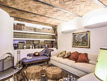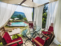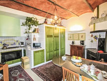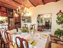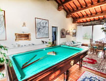 Villa Campo del Mulino, in der Hügellandschaft von Pistoia auf 400 m.ü.M gelegen. Ideal für entspannte und ruhige Ferien im Grünen. Gute Ausgangslage für Tagesreisen an den Strand der Versilia (65 km) wie auch zu den Kunststädten, dem historischen Kulturgut der Toskana: Lucca 50 km, Pisa 75 km und Siena 110 km. Den Gästen steht ein Tennisplatz (Kunstrasen) zur Verfügung, dieser kann auch als Fussballplatz benutzt werden. Fitness-Geräte. Sonnenterrasse. alleinstehende Villa "Villa Campo del Mulino". 10 km vom Zentrum von Pistoia, 45 km vom Zentrum von Firenze, 70 km vom Zentrum von Forte dei Marmi, alleinstehende, sonnige, erhöhte Lage auf einem Hügel, 70 km vom Meer, im Grünen. Zur Alleinbenutzung: Grundstück 15'000 m2 (eingezäunt), Schwimmbad (12 x 6 m, 120 cm tief, saisonale Verfügbarkeit: 14.Mai. - 24.Sep.). Tennis (1 x Hartbelag), Gartenmöbel, Grill. Im Hause: Billard, Heizung vor Ort zu zahlen (01.11. - 15.04.), Heizung nur verfügbar von 01.11. bis 15.04.. Wohnungsreinigung 1 mal wöchentlich (inkl.). Abholservice vom Flughafen (extra). Parkplatz beim Haus. Lebensmittelgeschäft 3 km, Sandstrand "Viareggio - Forte dei Marmi" 70 km, Thermalbad "Montecatini Terme" 25 km. Golfplatz 25 km. Das Golfspiel kann beginnen. Egal auf welchem der Plätze der Schlagabtausch stattfinden soll, hier Inmitten reizvoller Landschaft sind Sie am richtigen Ort. Freunde von Ballsportarten wie Tennis finden hier etliche Gelegenheiten auf dem vorhandenen Tenniscourt.Interior