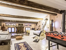 13-Zimmer-Haus 500 m2 auf 3 Stockwerken. Offenes Wohnzimmer mit offenem Kamin. Offener Salon. Esszimmer. Küche (5 Kochplatten, Backofen, Geschirrspüler, Toaster, Wasserkocher, Tiefkühler). Dusche/Bidet/WC. Obergeschoss: kleiner Salon. Ausgang zur Veranda. Wohnzimmer mit offenem Kamin und Sat-TV. Spielzimmer. Wohnzimmer mit offenem Kamin und Sat-TV. 1 kleines Zimmer mit 1 Bett. 1 Doppelzimmer mit Dusche. Kochnische (5 Kochplatten, Backofen, Geschirrspüler, Tiefkühler). Bad/Bidet/WC. 2. Obergeschoss: 1 abgeschrägtes Zimmer, Deckenhöhe 175 - 300 cm mit 2 Betten. 1 Zimmer mit 1 Bett. 2 Doppelzimmer. Bad/Bidet/WC. Garten. Terrassenmöbel. Zur Verfügung: Waschmaschine. Internet (Wireless LAN, gratis). Das Bad im 2.Obergeschoss ist mit Badewanne mit Druckstrahlmassage ausgestattet. Das Haus ist auch mit einer Feuerstelle ausgestattet. Das Haus ist auch mit einem Pool ausgestattet. Es gibt ein privater Pool. Das Haus ist auch mit einem drahtlosen lokalen Netzwerk (WLAN) ausgestattet. Mit Reinigung. Es hat ein Billardtisch.- Aktivitäten in der Nähe