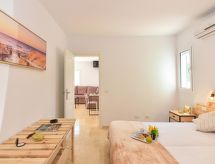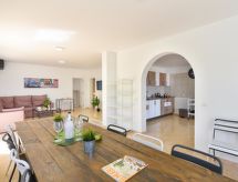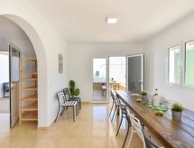 4-Zimmer- "Villa Candela 7PAX", Haus für 7 Personen, 180 m2, einfach und komfortabel eingerichtet. Wohn-/Esszimmer mit Sat-TV. Rauchen nicht erlaubt. Internet (Wireless LAN [WLAN]). Schlafzimmer mit 1 Doppelbett. Schlafzimmer mit 2 Normalbetten. Schlafzimmer mit 1 Etagenbett. Wohnküche mit 4 - Platten Herd, Mikrowelle, Grill, Esstisch, Kühlschrank und Tiefkühler. Dusche und Dusche/WC. Gartensitzplatz, 7 Liegestühle. Weitere Ausstattung: Safe, Kinderhochstuhl, Haartrockner, Bügeleisen, Waschmaschine. 2021-T4120 Treten Sie ein und spüren die erfrischende Brise der Klimaanlage. Es hat eine Veranda. Das Haus ist auch mit einem Pool ausgestattet.- Charakteristik des Mietobjekts