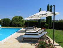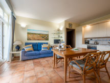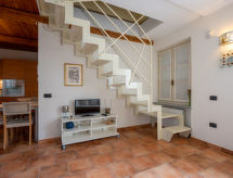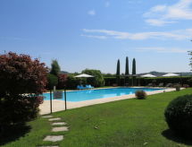 5-Zimmer-Doppelhaushälfte 250 m2 auf 3 Stockwerken. Hell, komfortabel und geschmackvoll eingerichtet: 1 Zimmer mit 1 Doppelbett und Klimaanlage. Wohnküche (Backofen, Geschirrspüler, 5 Flammen, Toaster, Wasserkocher, Mikrowelle, Tiefkühler, elektrische Kaffeemaschine) mit Esstisch, TV, Internationale TV-Sender und Stereoanlage. Ausgang zum Garten. Dusche/WC. Obergeschoss: 1 Zimmer mit 2 Diwanbetten, 1 Doppelbett und Klimaanlage. Wohn-/Esszimmer mit Esstisch. Kleine, offene Küche (Backofen, Geschirrspüler, 5 Flammen). Sep. WC. Dachgeschoss: 1 offenes Zimmer mit 2 Betten, Dusche/WC und Klimaanlage. Heizung. Natursteinböden. Terrasse überdacht Terrasse, Rasen 1'000 m2. Terrassenmöbel, Gartengrill (mobil). Panoramasicht auf die Landschaft und das Städtchen. Zur Verfügung: Waschmaschine, Kinderhochstuhl, Babybett. Internet (Wireless LAN, gratis). Bitte beachten: Nichtraucher-Haus. Bei Belegung mit weniger Personen als der maximalen Personenzahl stehen nicht alle Schlafzimmer zur Verfügung. Es werden keine zusätzlichen Gebühren vor Ort fällig, ausgenommen der örtlichen Kurtaxe. CIR: 005050-APA-00001 Das Grundstück ist komplett eingezäunt. In unserem Garten bietet sich Ihnen viel Platz für Entspannung und Erholung. Auch wenn es in der Nacht noch so heiss bleibt, ist es schön, kann man die Klimaanlage einschalten und in einem angenehm temperierten Raumklima schlafen. Geeignet für ein Barbecue. Das Haus ist auch mit einem privaten Pool ausgestattet.- Ausstattung
