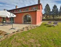 Sehr schöne, komfortable Residenz "Cignella Resort", umgeben von Bäumen, Feldern und Weinbergen. 13 Wohnungen in der Residenz. 3 km vom Zentrum von Trequanda, alleinstehende, sonnige, erhöhte Lage, im Grünen. Zur Mitbenutzung: Grundstück (eingezäunt), grosser Garten Pflanzen und Bäumen, Schwimmbad eingezäunt (10 x 12 m, saisonale Verfügbarkeit: 01.Mai. - 15.Okt. Öffnungszeiten Schwimmbad: 08:00-19:00) mit Innentreppe. Kinderbecken, Aussendusche, Sitzplatz, Pergola, Terrasse, Gartenmöbel, Grill, Poolpflege durch den Besitzer/Gärtner. Im Hause: Empfang, Frühstücksraum, Aufenthaltsraum, Massage (extra). Wäschewechsel 1 mal wöchentlich. Handtuchwechsel 1 mal wöchentlich. Wohnungsreinigung möglich (extra). Frühstück möglich (extra). Abholservice vom Flughafen (extra). 1 km lange holprige Zufahrt. Parkplatz auf dem Grundstück. Einkaufsgeschäft 3 km, Lebensmittelgeschäft 3 km, Supermarkt 10 km, Einkaufszentrum 10 km, Restaurant 3.5 km, Bushaltestelle 1.5 km, Bahnstation "Foiano della Chiana" 22 km, Thermalbad "Rapolano Terme" 30 km, Badesee "Trasimeno" 30 km. Golfplatz (9 Loch) 17 km. Nahe gelegene Sehenswürdigkeiten: Pienza 13 km, Montepulciano 14 km, Montalcino 32 km, Cortona 39 km, Arezzo 48 km, Siena 49 km. Bekannte Seen in der Umgebung sind gut erreichbar: Trasimeno 30 km, Chiusi 35 km. Bitte beachten: Öffnungszeiten der Rezeption 09:00-18:00 Uhr. Geeignet für Familien, Babyausstattung (inkl.), Kinderbetreuung (extra). Geeignet für Events. Es kann auf Anfrage ein Transfer ab Flughafen zum Ferienobjekt organisiert werden. Bitte beachten: Be- und Entladen am Ferienhaus möglich. Residenz ist 24 Std. überwacht. Die Residenz wird durch elektrische Tore geschlossen. Alle Häuser/Wohnungen sind individuell eingerichtet. Buchen sie eine Massage und lassen Sie sich bei uns nach allen Regeln der Kunst kneten.Interior