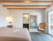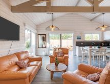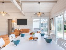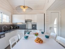 Komfortables Einfamilienhaus "Villa Horizon", renoviert im Jahre 2020. Im Ortsteil Sud, 210 m vom Meer, 6 km vom See, 210 m vom Strand. Zur Alleinbenutzung: Grundstück 500 m2 (eingezäunt). Einkaufsgeschäft 700 m, Supermarkt 650 m, Restaurant 50 m, Bäckerei 700 m, Fahrradverleih 1 km, Sandstrand "Plage Sud" 210 m. Golfplatz (18 Loch) 5 km, Surfschule 200 m, Tennis 3 km, Minigolf 4 km, Reitstall 4 km.Interior
