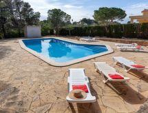 "Villa Illot", 5-Zimmer-Villa 150 m2. Komfortabel und gemütlich eingerichtet: Wohn-/Esszimmer mit 2 Doppeldiwanbetten (120 cm), Esstisch, Sat-TV und Digital-TV. 1 Zimmer mit 1 franz. Bett (135 cm). 1 Zimmer mit 3 Betten (90 cm). 1 Zimmer mit 1 Bett (90 cm). 1 Zimmer mit 2 Betten (90 cm). Küche (Backofen, Geschirrspüler, 4 Glaskeramikherd Platten, Toaster, Wasserkocher, elektrische Kaffeemaschine). Dusche/WC, sep. WC, Doppelwaschbecken. Keine Heizmöglichkeit. Terrasse. Terrassenmöbel, Gartengrill, Loggia. Zur Verfügung: Waschmaschine, Bügeleisen, Kinderhochstuhl, Babybett, Haartrockner. Internet (Wireless LAN, gratis). Parkplatz beim Haus. Bitte beachten: 1 Haustier/Hund erlaubt. TV nur ES, DE, FR. HUTTE001232 Soll der geliebte Hund während der Ferienzeit in einer Tierunterkunft untergebracht werden? Nein, der Vierbeiner gehört zur Familie und ohne ihn ist ein perfekter Urlaub praktisch undenkbar und deshalb hier gern gesehen. Ein Solarium ist in der Unterkunft vorhanden und verfügbar. Es hat ein Balkon. Es gibt ein privater Pool. Ein drahtloses lokales Netzwerk (WLAN) ist vorhanden.- Ausstattung