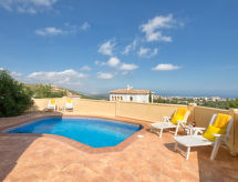 "Villa Jacaranda", 4-Zimmer-Haus 130 m2 auf 2 Stockwerken, im Obergeschoss. Geräumig und hell, komfortabel und gemütlich eingerichtet: Wohn-/Esszimmer mit Sat-TV und Digital-TV (Flachbildschirm), Klimaanlage. Ausgang zur Terrasse. 1 Zimmer mit 1 franz. Bett, Bad/Bidet/WC, Waschbecken und Ventilator. 2 Zimmer, jedes Zimmer mit 2 Betten und Ventilator. Küche (Backofen, Geschirrspüler, 4 Glaskeramikherd Platten, Toaster, Wasserkocher, Mikrowelle, Tiefkühler, elektrische Kaffeemaschine). Ausgang zur Terrasse. Dusche/WC. Keine Heizmöglichkeit. Terrassenmöbel, Gartengrill (mobil), Liegestühle (5). Herrliche Panoramasicht auf das Meer, die Berge, das Tal und die Landschaft. Zur Verfügung: Waschmaschine, Bügeleisen, Kinderhochstuhl, Babybett, Haartrockner. Internet (Wireless LAN, gratis). Parkplatz. 1 Haustier/Hund erlaubt. AT-437872-A Mit Aussicht aufs Meer. Es gibt ein Parkplatz. Das Haus ist auch mit einem privaten Pool ausgestattet. Dank der Waschmaschine die Sie vorfinden, sind weniger Kleider zum mitschleppen.- Charakteristik des Mietobjekts