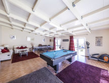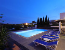 "Villa Kambu", 6-Zimmer-Haus 227 m2 auf 2 Stockwerken. Schön und geschmackvoll eingerichtet: Wohn-/Esszimmer mit offenem Kamin (nur Deko), Esstisch und Sat-TV (Flachbildschirm), Stereoanlage, DVD und Klimaanlage. Ausgang zur Terrasse. Grosses, Billardzimmer mit TV und Klimaanlage. Ausgang zur Terrasse. 1 Zimmer mit 1 franz. Bett (160 cm, Länge 200 cm), Bad/WC und TV (Flachbildschirm), Klimaanlage. Ausgang zur Terrasse. 1 Zimmer mit 2 Betten (90 cm, Länge 190 cm), TV (Flachbildschirm), Klimaanlage. Ausgang zur Terrasse. 1 Zimmer mit 2 Betten (90 cm, Länge 190 cm), TV (Flachbildschirm), Klimaanlage. Küche (Backofen, Geschirrspüler, 4 Glaskeramikherd Platten, Toaster, Wasserkocher, Mikrowelle, Tiefkühler, elektrische Kaffeemaschine). Ausgang zur Terrasse. Bad/WC, Dusche/WC. Klimaanlage. Obergeschoss: 1 Zimmer mit 1 franz. Bett (160 cm, Länge 200 cm), Bad/WC, Doppelwaschbecken, mit Eckbadewanne und TV (Flachbildschirm), Klimaanlage. Balkon, Terrasse teilweise überdacht Terrasse. Terrassenmöbel, Gartengrill, Liegestühle (8). Zur Verfügung: Waschmaschine, Safe, Kinderhochstuhl, Babybett. Internet (Wireless LAN, gratis). Bitte beachten: Nichtraucher-Unterkunft. Rauchmelder, Feuerlöscher. 4527/AL Das Grundstück ist komplett eingezäunt. Eine Feuerstelle ist vorhanden. Das Haus ist auch mit einem privaten Pool ausgestattet. Ein Internetanschluss ist verfügbar. Es gibt ein DVD Spieler. Ein Tischtennistisch ist vorhanden. Ein Ofen ist vorhanden.- Charakteristik des Mietobjekts
