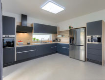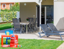 5-Zimmer-Doppelhaushälfte 170 m2 auf 2 Stockwerken. Schön und modern eingerichtet: Wohn-/Esszimmer mit Sat-TV und Klimaanlage. Ausgang zur Terrasse, zum Schwimmbad. Offene Küche (Backofen, Geschirrspüler, 4 Induktionskochplatten, Toaster, Wasserkocher, Mikrowelle, Tiefkühler, elektrische Kaffeemaschine). Ausgang zur Terrasse, zum Schwimmbad. Sep. WC. Obergeschoss: (Wendeltreppe) 2 Zimmer, jedes Zimmer mit 1 franz. Bett (180 cm, Länge 200 cm), Dusche/WC, Sat-TV und Klimaanlage. 2 Zimmer, jedes Zimmer mit 1 Bett (80 cm, Länge 200 cm), 1 franz. Bett (180 cm, Länge 200 cm), Dusche/WC, Sat-TV und Klimaanlage. Terrasse 24 m2. Terrassenmöbel, Gartengrill (mobil), Liegestühle. Sicht auf das Schwimmbad. Zur Verfügung: Safe, Bügeleisen, Fliegengitter, Kinderhochstuhl, Babybett, Haartrockner. Internet (Wireless LAN, gratis). Garage (2 Autos). Bitte beachten: Nichtraucher-Haus. Das Grundstück ist komplett eingezäunt. Ein privater Pool ist vorhanden. Ein Wäschetrockner ist verfügbar. Ein Billardtisch ist verfügbar.- Ausstattung