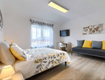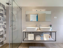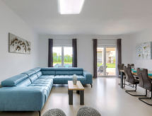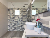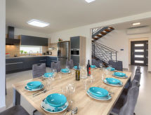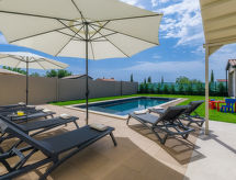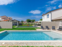 Šišan 4 km von Medulin: Modernes, schönes Doppelhaus "Villa Lea", auf 2 Stockwerken, Baujahr 2021. 300 m vom Zentrum von Šišan, 2 km vom Zentrum von Ližnjan, 7 km vom Zentrum von Pula, 3 km vom Meer, 3 km vom Strand. Zur Alleinbenutzung: Grundstück 700 m2 (eingezäunt) mit Rasen 200 m2, Schwimmbad eckig (45 m2, 135 cm tief, saisonale Verfügbarkeit: 03.Apr. - 06.Nov.) mit Innentreppe und Salzelektrolyse-Reinigungssystem. Aussendusche, Badminton, Grill, Grillhaus, Poolpflege durch den Besitzer/Gärtner. Im Hause: Internetzugang, Billard, Zentralheizung, Klimaanlage, Alarmanlage, Waschmaschine, Wäschetrockner. Parkplatz (für 2 Autos) beim Haus auf dem Grundstück. Einkaufsgeschäft 300 m, Supermarkt 4 km, Restaurant 50 m, Café 300 m, Kieselstrand 3 km, Steinstrand 3 km, Felsstrand 3 km. Jacht-Hafen 4 km, Surfschule 4 km, Segelschule 4 km, Tennis 2 km, Kinderspielplatz 800 m. Jugendgruppen nur auf Anfrage. Bitte beachten: Flugplatz 10 km vom Haus. Schwimmbad mit Hydromassage.Interior