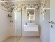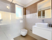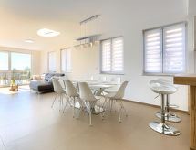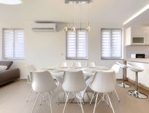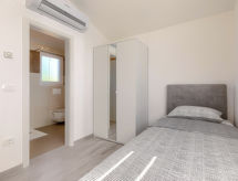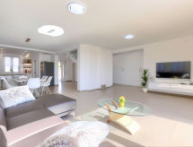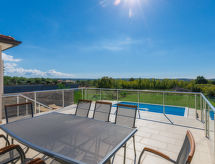 5-Zimmer-Haus 170 m2 auf 2 Stockwerken. Schön und geschmackvoll eingerichtet: Wohn-/Esszimmer mit Sat-TV (Flachbildschirm), Klimaanlage. Ausgang zur Terrasse, zum Schwimmbad. 1 Zimmer mit 1 franz. Bett (160 cm, Länge 200 cm), Sat-TV (Flachbildschirm), Klimaanlage. Ausgang zur Terrasse. 1 Zimmer mit 2 Betten (90 cm, Länge 200 cm), Sat-TV (Flachbildschirm), Klimaanlage. Offene Küche (4 Kochplatten, Geschirrspüler, Wasserkocher, Tiefkühler, elektrische Kaffeemaschine). Bad/WC, Dusche/WC. Obergeschoss: offene Galerie mit Sat-TV (Flachbildschirm), Klimaanlage. 1 Zimmer mit 1 franz. Bett (160 cm, Länge 200 cm), Dusche/WC und Sat-TV (Flachbildschirm), Klimaanlage. Ausgang zur Terrasse. 1 Zimmer mit 2 Betten (90 cm, Länge 200 cm), Sat-TV (Flachbildschirm), Klimaanlage. Dusche/WC. Bodenheizung (extra). Terrasse 30 m2, Terrasse 15 m2, überdacht. Terrassenmöbel, Gartengrill (mobil), Liegestühle. Sicht auf das Schwimmbad. Zur Verfügung: Haartrockner. Internet (Wireless LAN, gratis). Treten Sie ein und spüren die erfrischende Brise der Klimaanlage. Das Haus ist auch mit einer Terrasse ausgestattet. Es gibt ein privater Pool.- Aktivitäten in der Nähe