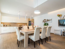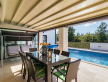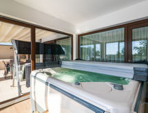 4-Zimmer-Haus 280 m2 auf 2 Stockwerken. Schön und gemütlich eingerichtet: Wohn-/Esszimmer mit 1 Doppeldiwanbett (200 cm, Länge 210 cm), offenem Kamin und Sat-TV (Flachbildschirm), Klimaanlage. Ausgang zur Terrasse. 1 Zimmer mit 1 Doppelbett (2 x 90 cm, Länge 200 cm), Bad/WC und Sat-TV (Flachbildschirm), Klimaanlage. Ausgang zum Schwimmbad. Offene Küche (Backofen, Geschirrspüler, 4 Induktionskochplatten, Toaster, Wasserkocher, Mikrowelle, Tiefkühler, elektrische Kaffeemaschine) mit Klimaanlage. Ausgang zur Terrasse. Sep. WC. Obergeschoss: 1 Zimmer mit 1 Doppelbett (2 x 90 cm, Länge 200 cm), Bad/WC und Sat-TV (Flachbildschirm), Klimaanlage. 1 Zimmer mit 2 Betten (90 cm, Länge 200 cm), Bad/WC und Sat-TV (Flachbildschirm), Klimaanlage. Warmluftheizung. Balkon 9 m2, Terrasse 18 m2, überdacht, Terrasse 9 m2. Terrassenmöbel, Liegestühle. Sicht auf den Wald. Zur Verfügung: Safe, Bügeleisen, Fliegengitter, Kinderhochstuhl, Babybett, Haartrockner. Internet (Wireless LAN, gratis). Parkplatz (eingezäunt). Bitte beachten: Nichtraucher-Haus. Feuerlöscher. Eine Badewanne ist verfügbar. Ein dazugehöriger idyllischer Garten lädt zum Verweilen in der Sonne ein. Für Ihr Wohlbefinden geniessen den Whirlpool in der Urlaubszeit. Das Haus ist auch mit einem privaten Pool ausgestattet. Es hat ein beheizter Pool. Das Haus ist auch mit einem Billardtisch ausgestattet.- Ausstattung