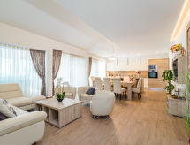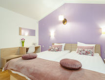 Schönes Einfamilienhaus "Villa Mala Halu", auf 2 Stockwerken. Im Weiler Mandalenčići, 4 km vom Zentrum von Gračišće, 8 km vom Zentrum von Pazin, ruhige, sonnige Lage, 30 km vom Meer, im Grünen. Zur Alleinbenutzung: Grundstück 20'000 m2, Bäumen, Wiese, Schwimmbad eckig, beheizt (10 x 4 m, 145 cm tief, saisonale Verfügbarkeit: 01.Jan. - 31.Dez.). Aussendusche, Grillhaus, Kinderspielplatz (Rutschbahn, Schaukel). Im Hause: Internetzugang, Sprudelbad, Billard, Tischfussball, Alarmanlage, Waschmaschine. Zur Verfügung: Fahrräder (3). Parkplatz (für 2 Autos) beim Haus auf dem Grundstück. Einkaufsgeschäft 4 km, Supermarkt 8 km, Restaurant 8 km, Kieselstrand 30 km. Bitte beachten: Flugplatz 55 km vom Haus. Schwimmbad beheizt (extra). Es ist notwendig 7 Tage im Voraus bekannt zu geben, ob die Schwimmbadheizung eingeschaltet werden soll. Videoüberwachung der Immobilie.Interior