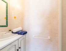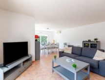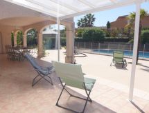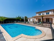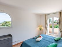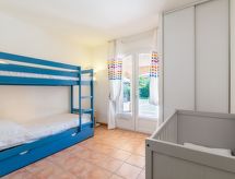 6-Zimmer-Villa 130 m2 auf 2 Stockwerken. Schön eingerichtet: grosses Wohn-/Esszimmer mit Panoramafenster mit TV (Flachbildschirm), Stereoanlage und Klimaanlage. Ausgang zur Terrasse, zum Schwimmbad. 1 Kinderzimmer mit 1 x 2 Etagenbetten (80 cm, Länge 190 cm), Waschbecken und Dusche. 1 Zimmer mit 2 Betten (90 cm, Länge 200 cm), Waschbecken und Dusche. Ausgang zur Terrasse, zum Schwimmbad. Grosse Küche (Backofen, Geschirrspüler, 4 Glaskeramikherd Platten, Toaster, Wasserkocher, Mikrowelle, Tiefkühler, elektrische Kaffeemaschine) mit kleinem Esstisch. Ausgang zur Terrasse, zum Schwimmbad. Sep. WC. E-Heizung. Obergeschoss: 2 Zimmer, jedes Zimmer mit 1 franz. Bett (1 x 160 cm, Länge 200 cm), Waschbecken, Dusche und Klimaanlage. Ausgang zum Balkon. Sep. WC. Grosse Terrasse 120 m2, kleine Laube. Terrassenmöbel, Gartengrill, Liegestühle (4). Zur Verfügung: Waschmaschine, Safe, Bügeleisen, Kinderhochstuhl, Babybett bis 3 Jahre, Haartrockner. Internet (Wireless LAN, gratis). Parkplatz (2 Autos). Bitte beachten: geeignet für Familien. Nichtraucher-Haus. TV nur FR. Rauchmelder. Ein privater Pool ist vorhanden. Ein Tischtennistisch ist verfügbar.- Ausstattung