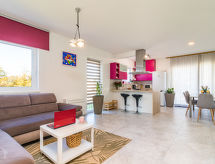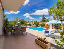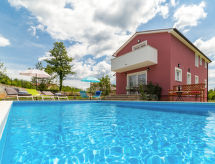 Schönes Einfamilienhaus "Villa May", auf 2 Stockwerken, Baujahr 2018. Im Weiler Červari, 3 km vom Zentrum von Tinjan, 14 km vom Zentrum von Pazin, 16 km vom Zentrum von Poreč, ruhige, sonnige Lage, 16 km vom Meer. Zur Alleinbenutzung: Grundstück 1'900 m2 (eingezäunt), Rasen 1'000 m2 Bäumen, Schwimmbad eckig (9 x 4 m, 37 m2, 140 cm tief, saisonale Verfügbarkeit: 03.Apr. - 09.Okt.) mit Innentreppe. Aussendusche, Tischtennis, Volleyball, Terrasse (50 m2), Gartenmöbel, Grill, Poolpflege durch den Besitzer/Gärtner. Im Hause: Internetzugang, Waschmaschine. Zufahrt bis zum Haus (50 m Naturweg). Parkplatz (für 4 Autos) auf dem Grundstück. Einkaufsgeschäft 3 km, Supermarkt 14 km, Restaurant 2 km, Kieselstrand 16 km, betonierter Strand 16 km. Wanderwege ab Haus 200 m. Nahe gelegene Sehenswürdigkeiten: Adventure park 5 km. Bitte beachten: Flugplatz 52 km vom Haus. Die Region ist ein beliebtes Reiseziel für ein vergnügendes Segelerlebniss.Interior