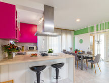 5-Zimmer-Haus 150 m2 auf 2 Stockwerken, Nordostlage. Schön und modern eingerichtet: Wohn-/Esszimmer 48 m2 mit Sat-TV (Flachbildschirm), Klimaanlage. Ausgang zur Terrasse. 1 Zimmer 10 m2 mit 1 franz. Bett (160 cm, Länge 200 cm), Dusche/Bidet/WC und Klimaanlage. Offene Küche (Backofen, 2 Glaskeramikherd Platten, 2 Flammen, Toaster, Wasserkocher, Mikrowelle, Tiefkühler, elektrische Kaffeemaschine). Sep. WC. Obergeschoss: 1 Zimmer 10 m2 mit 1 franz. Bett (180 cm, Länge 200 cm), Bad/Bidet/WC und Klimaanlage. 1 Zimmer 14 m2 mit 1 franz. Bett (180 cm, Länge 200 cm), Klimaanlage. Ausgang zum Balkon. 1 Zimmer 8 m2 mit 2 Betten (90 cm, Länge 200 cm), Klimaanlage. Dusche/Bidet/WC. Warmluftheizung. Balkon 6 m2, Terrasse 15 m2 teilweise überdacht. Terrassenmöbel, Liegestühle. Sicht auf das Schwimmbad und die Landschaft. Zur Verfügung: Safe, Bügeleisen, Fliegengitter, Kinderhochstuhl, Babybett. Internet (Wireless LAN, gratis). Bitte beachten: Nichtraucher-Haus. 1 Haustier/Hund erlaubt. Rauchen ist nicht erlaubt. Auch ihr Hund ist hier ein gern gesehen Feriengast, schließlich gehört er zur Familie. Damit es auch im Sommer angenehm kühl bleibt, verfügt dieses Ferienobjekt über eine Klimaanlage. Es hat ein Balkon. Ein privater Pool ist vorhanden. Ein Tischtennistisch ist verfügbar.- Charakteristik des Mietobjekts